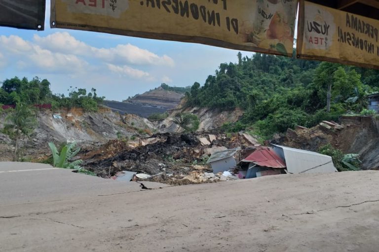 Six residents’ houses were destroyed by landslides caused by the coal mining operation in Sanga-sanga. Photo: East Kalimantan-Special Jatam document