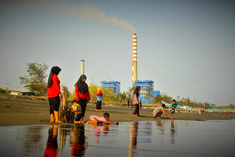Domestic coal is absorbed, as an energy source for PLTU. In this picture, you can see small children playing on Menganti Beach, which is only less than one kilometer from the coal-fired power plant. Photo: Tommy Apriando / Mongabay Indonesia