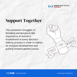 Even until now, Kartini (a nickname for the empowered women in Indonesia) from Kendeng are still fighting to preserve the nature that has been their main source of livelihood. This consistent action shows where there is a policy, women’s participation is also imperative.