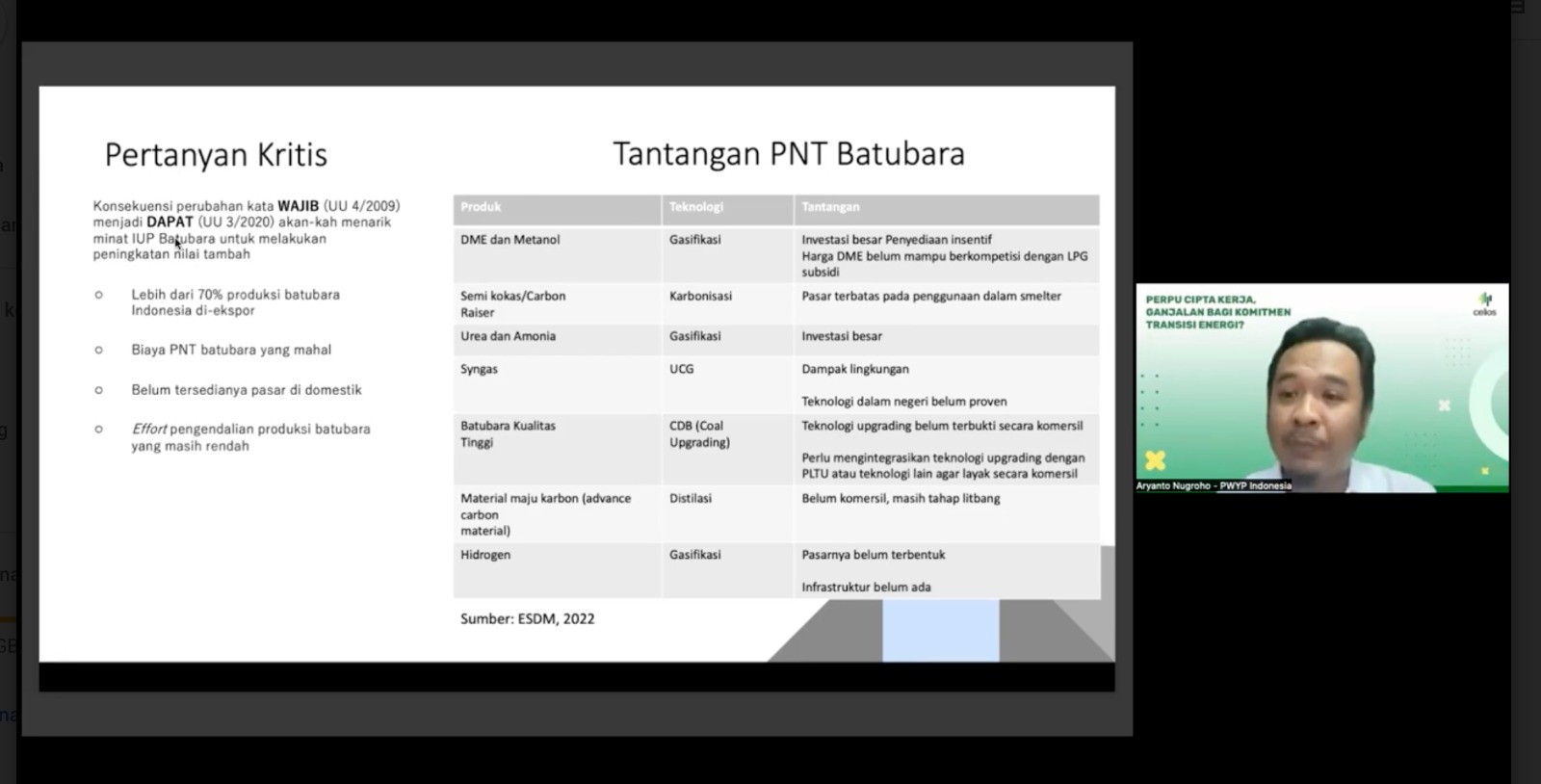 On this occasion, Aryanto said that the policy of increasing the added value of the coal sector was still half-hearted. One of them is the change in the word MANDATORY to CAN for Mining Business License (IUP) and Special Mining Business License (IUPK) production operations that implement value-added improvements in Law Number 3 of 2020 (Minerba Law). In addition, Aryanto also said that the 0% royalty is also a privilege for IUPK holders of the continuation of the Coal Mining Concession Karaya Agreement (PKP2B) in addition to providing an extension for 10 (ten) years at each extension if they increase added value.