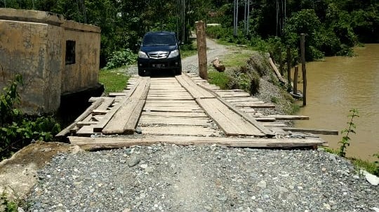 The only access road in and out of the gampong is still rocky and inadequate, also a bridge that has tilted, even at some points it is connected by wood, and part of the head of the bridge (abutment) has been eroded by the river flow.