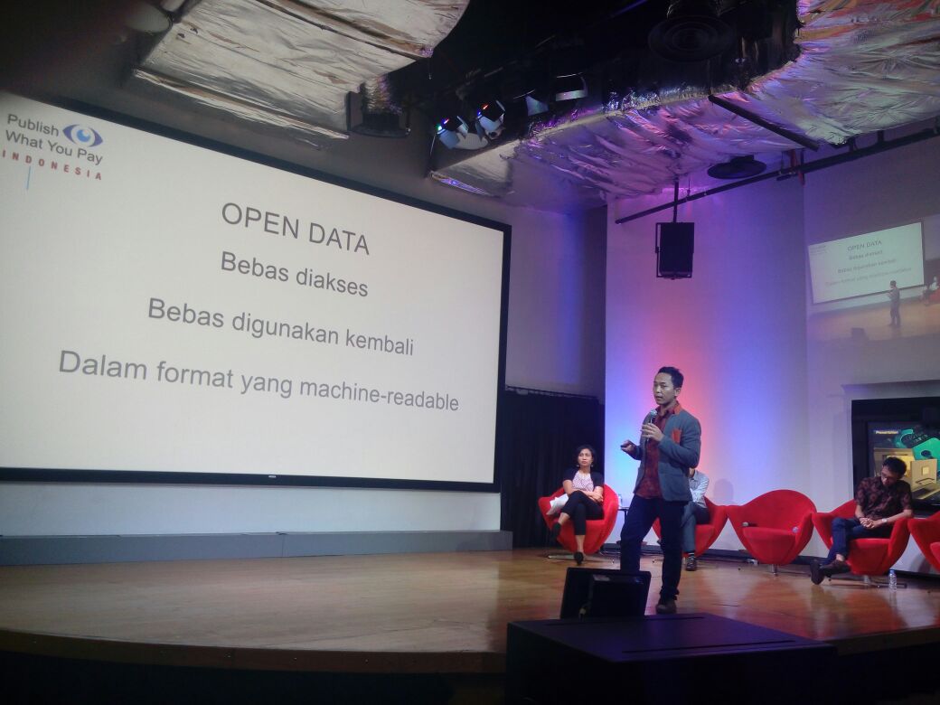 Celebrating Open Data Day on 21 February, PWYP-Indonesia in cooperation with Atamerica (@america) organized talk show, entitled “Riding Open Data Movement for Better Indonesia” on 17th February 2015. This talk show presented four speakers with varied background, including Jensi Sartin (Publish What You Pay Indonesia), Dyah Setiawaty (Perludem), Arkka Diratara (data.id), and Yuandra Ismiraldi (School of data fellows).