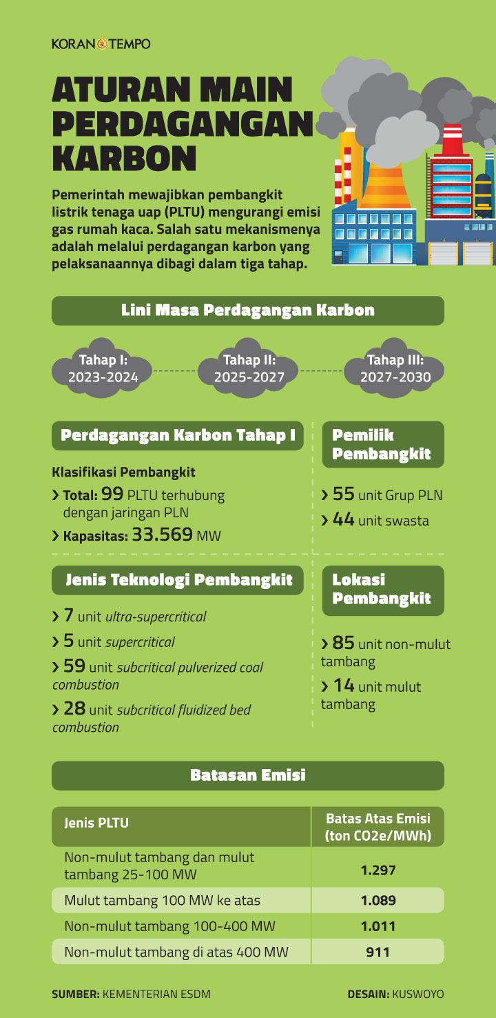 He hopes this carbon trading scheme can encourage businesses to be more aggressive in reducing emissions. About 60 percent of domestic power plants use coal, so this sector contributes about 40 percent of the total emissions produced by Indonesia.