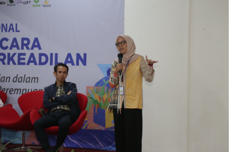 Mouna Wasef, Head of Research and Advocacy at PWYP Indonesia, spoke at a discussion session titled “Creating Gender-Just Energy Transition Regulations.” She highlighted that gender justice in the national energy transition remains suboptimal. One of the biggest challenges is the absence of regulations explicitly emphasizing gender equality and social inclusion in the energy sector, despite Indonesia’s presidential instruction on gender mainstreaming in development.