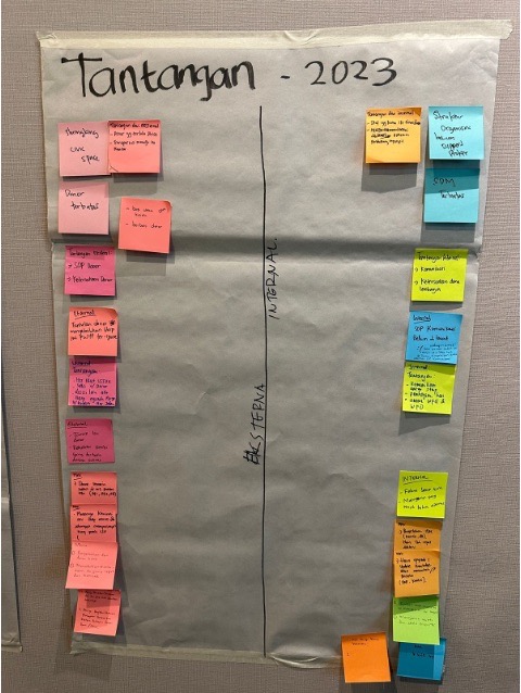 On the first day of the meeting, the PWYP Indonesia National Secretariat discussed the extent to which the organization’s vision and mission had been achieved and the achievement of the PWYP Indonesia Priority Agenda during 2023. In addition, this working meeting also looked at how all activities carried out follow the direction of the organization’s vision, mission, and priority agenda so far, whether they are still on track or out of track. Meliana Lumbantoruan, Deputy Director of PWYP Indonesia, facilitated the working meeting session, asking Seknas staff to reflect on the achievements and lessons learned by PWYP Indonesia throughout 2023.