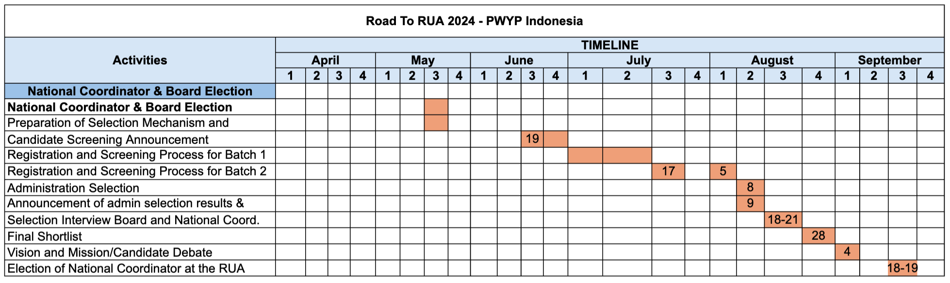 5. National Coordinator and Board member candidates register and submit their letter of interest and other supporting documents to https://swn.to/pendaftaran-kornas-board-pwypindonesia-2024