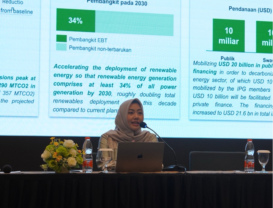 Kemala Fabrian, Project Coordinator for the JETP Secretariat, outlined the policy framework for a just energy transition and the Secretariat’s role in related projects. The JETP has three primary targets: