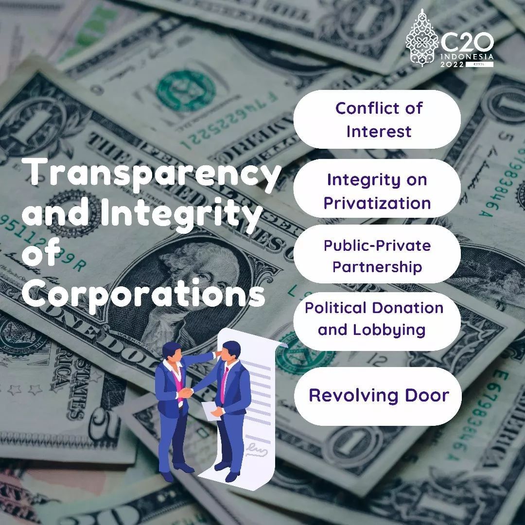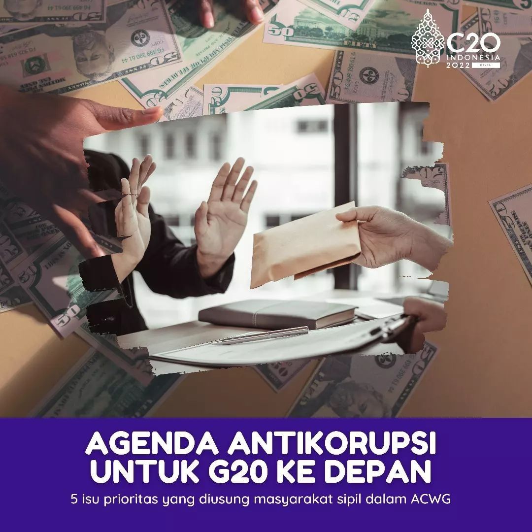 Momentum untuk merumuskan kembali strategi pemberantasan korupsi di G20 harus terus di dorong. Masyarakat sipil melalui Anti-Corruption Working Group (ACWG) mengusung 5 tema isu yang akan di dorong sebagai agenda bersama diantaranya: Combating Money Laundering and Recovery of Stolen Assets, Countering Corruption in Energy Transition, Transparency and Integrity of Corporations, Beneficial Ownership Transparency, dan Open Contracting.