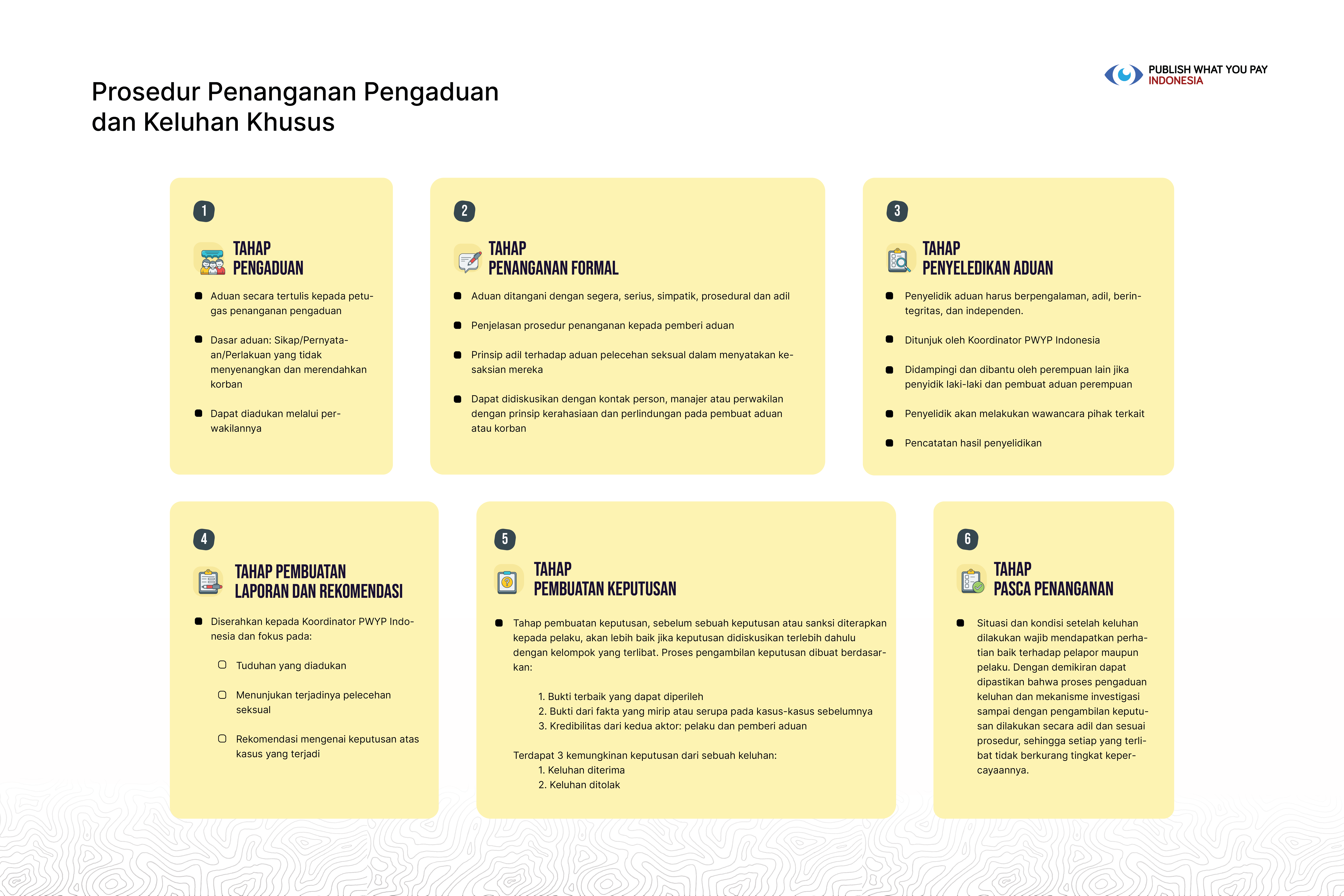 - Diserahkan kepada Koordinator PWYP Indonesia dan fokus pada: