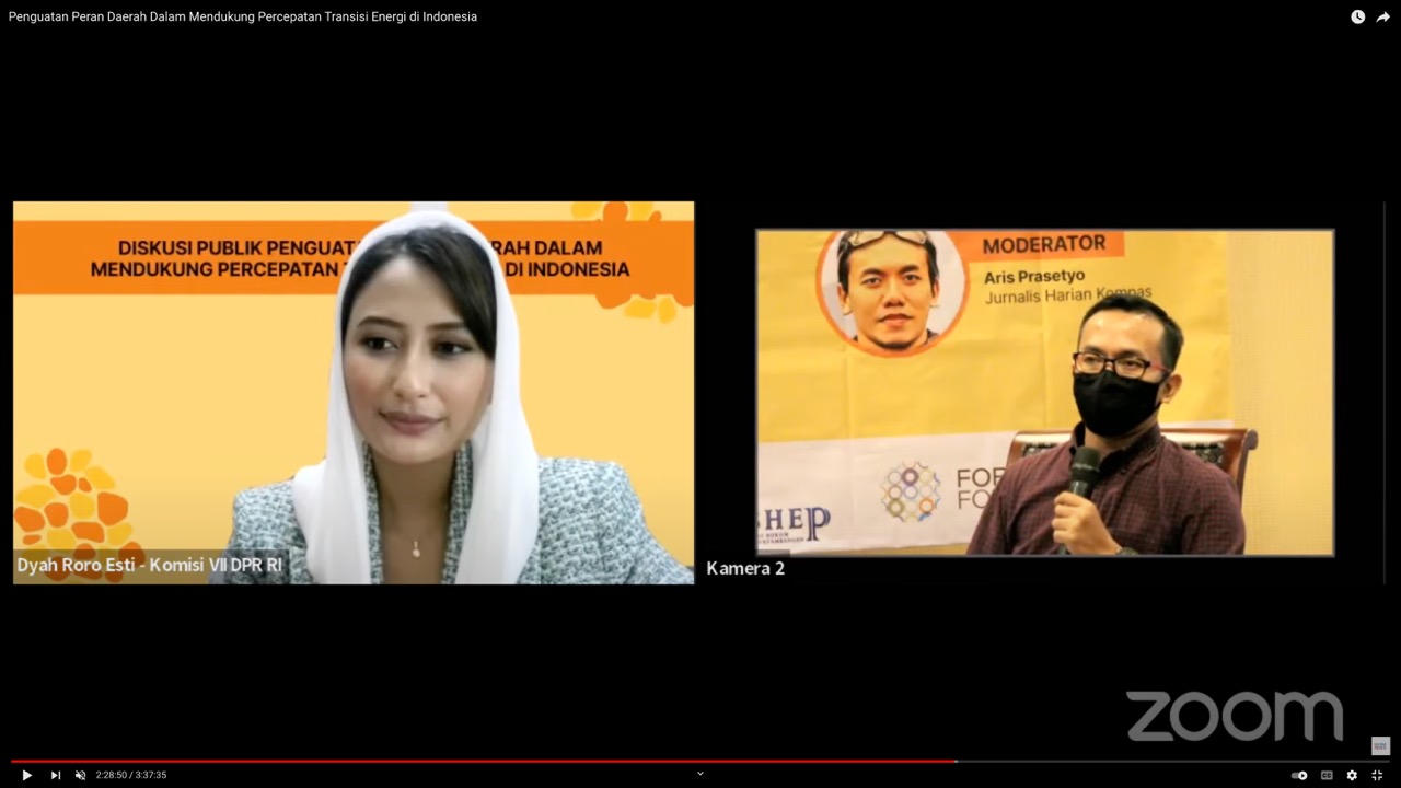 Menambahkan soal regulasi, Anggota Komisi VII DPR RI, Dyah Roro Esti, menerangkan bahwa saat ini parlemen sedang membahas Rancangan Undang-Undang (RUU) Energi Baru dan Terbarukan (EBT) yang menjadi salah satu RUU prioritas dalam Program Legislasi Nasional (Prolegnas) tahun 2022. Saat ini RUU EBT sudah selesai di tingkat Komisi dan tengah menunggu hasil pembahasan di Badan Legislasi (Baleg).