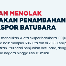 Batubara merupakan salah satu sumber utama penerimaan negara bukan pajak. Pada tahun 2018, batubara menyumbang PNBP sebesar Rp22,4 triliun yang menyumbang sekitar 1,2% dari total penerimaan negara. Belum lagi penerimaan negara dari pajak, kontribusi yang cukup besar dari perusahaan batubara menyebabkan batubara dieksploitasi dan diekspor secara besar-besaran. Sayangnya, eksploitasi besar-besaran belum memiliki tata kelola yang baik di sektor batubara. Terdapat banyak celah bagi sektor swasta untuk menghindari pembayaran pajak di sektor batubara. Diperkirakan pendapatan dari batubara belum optimal dan tidak sebanding dengan kerugian akibat kerusakan lingkungan, deforestasi, dan hilangnya mata pencaharian masyarakat sekitar tambang.