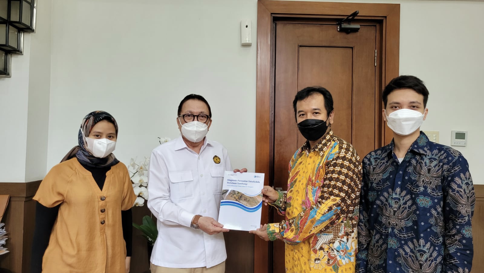 Jakarta – Sejumlah perwakilan koalisi Publish What You Pay (PWYP) Indonesia yang dipimpin langsung oleh Koordinator Nasional Aryanto Nugroho, melakukan kunjungan langsung kepada Prof. Dr. Irwandy Arief. M.Sc. selaku Staf Khusus Menteri Energi dan Sumber Daya Mineral (ESDM) bidang Percepatan Tata Kelola Mineral dan Batubara untuk mendiskusikan sejumlah isu perbaikan tata kelola sektor minerba. Di sela-sela kesibukannya, sambutan hangat diberikan oleh Prof. Irwandy Arief kepada perwakilan PWYP Indonesia pada 20 Januari 2022 di ruang kerjanya yang berada dalam komplek Gedung Kementerian ESDM di Jalan Merdeka Selatan, Jakarta.